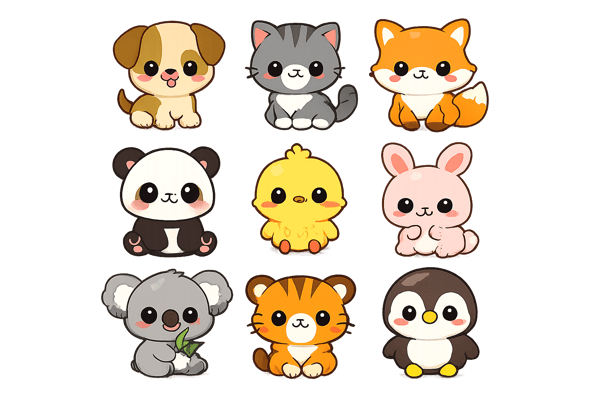 Produisez jusqu'à neuf cliparts thématiques en une seule image. Idéal pour les planches d'autocollants, les cartes de vocabulaire ou les fiches produits sans avoir à générer chaque élément individuellement.