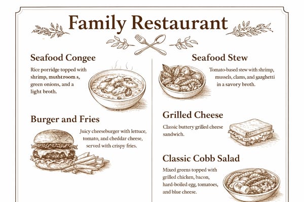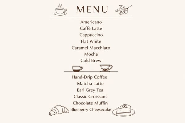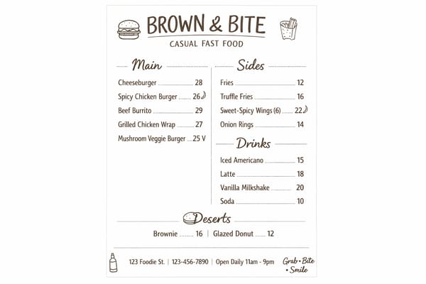 Özel tadım etkinlikleri için tek sayfalık menüleri, geniş içerikler için iki sütunlu düzenleri veya hızlı servis noktaları için sade listeleri seçin.