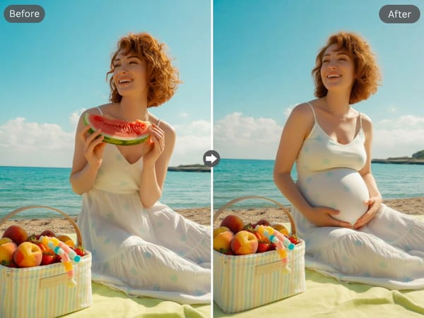 Şaşırtıcı Derecede Gerçekçi Sonuçlar: Yapay zekamız, hamilelik efektini fotoğrafınızın özel ışığına ve açısına uyacak şekilde akıllıca harmanlar.
