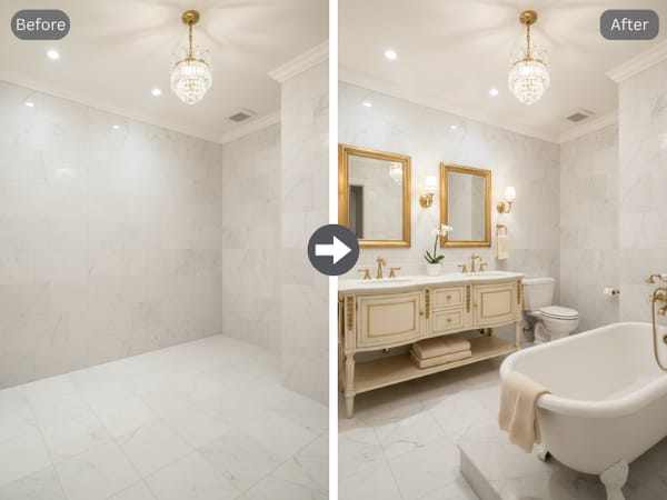 进行浴室装修时,盯着那一小块材料样本,往往很难想象出完美的最终效果。Somake 浴室设计工具可以根据您的输入,在现有布局中应用新的风格、材料和颜色。在您购买昂贵建材或联系装修团队之前,就能让一切创意清晰可见。与需要耗费数小时渲染的传统 CAD 软件不同,Somake 只需几秒钟即可生成照片级的实景对比图。