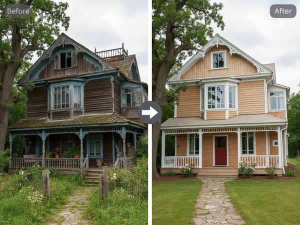 您买下了一处陈旧的房产并想改造外墙,但施工队需要明确的设计方向。您可以将照片上传到工具中,测试流行的砖墙与板条组合风格,并生成清晰的视觉参考。现在,您可以把具体的方案交给施工方,确保大家对房屋翻新的愿景完全一致。