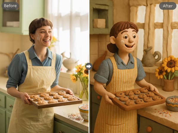 我們的 AI 會分析你上傳的圖片,並賦予它手做黏土特有的柔軟、可塑及些許不規則的視覺風格。轉換後的照片仍然保有藝術感與手作的魅力,就像定格動畫一樣可愛有趣,而且讓人看了很有觸感。