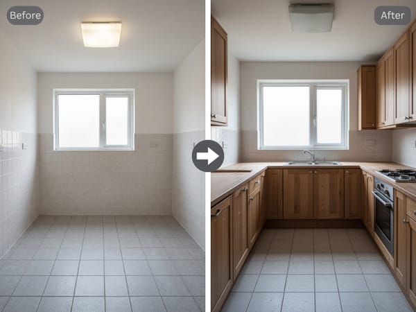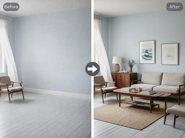 您可以用簡單的標籤如「濱海風」來設定大方向,也可以非常具體:「胡桃木中世紀櫥櫃、奶油色羊羔絨沙發、黃銅落地燈」。指令系統讓您無需專業設計軟體技能,就能完全掌控室內呈現出的樣貌。