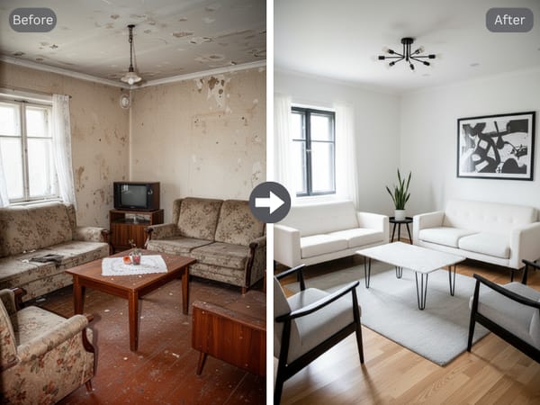 只需上傳空屋照片,秒速透過 AI 生成擬真家具。您可以隨意切換風格或描述特定需求,輕鬆導出可供房地產刊登的精美圖片。